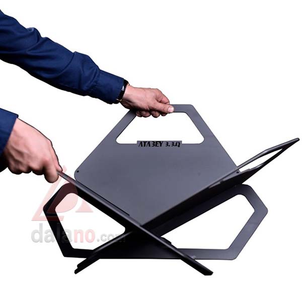 آتشدان و منقل آتابی، طرحی شامل 4 صفحه فولادی تخت با شیارهای دقیق و برش خورده توسط لیزر که باسرهم و وصل کردن سه قطعه آن به هم امکان تشکیل آتشدانی گل مانند را فراهم نموده و با اضافه کردن قطعه چهارم تبدیل به باربیکیویی عالی جهت پخت پز می گردد.این آتشدان در عرض چند دقیقه قابل مونتاژ و د مونتاژ بوده و پس از جدا شدن قطعات از هم ، روی هم پشته شده و با بستن محافظ دستگیره ها ، با توجه به وزن 12.8 کیلوگرمی آن به راحتی قابل حمل می باشد. طراحی نوآورانه آتشدان ATA BEY به شما اجازه می دهد که تقریباً در همه جا مورد استفاده قرار گیرد.