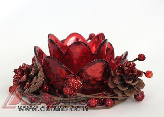شمعدان تزیین شده با انواع مهره، اکلیل، کاج و ...