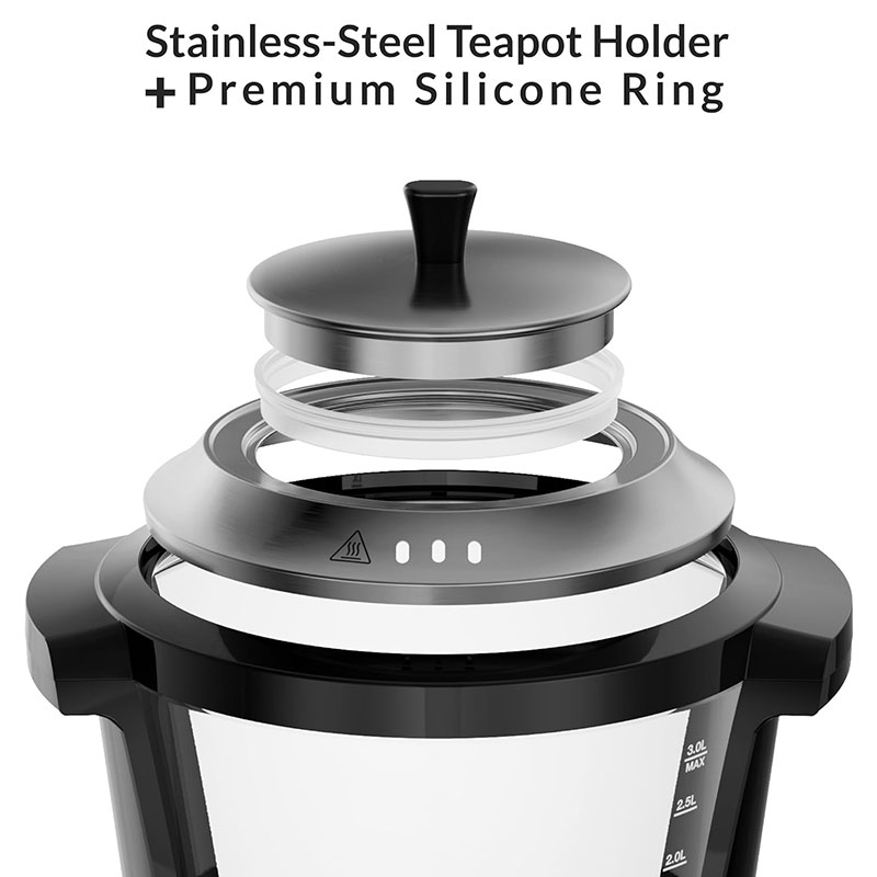 نگهدارنده قوری ممتاز: نگهدارنده جداشدنی از جنس استنلس استیل، ایمنی و راحتی نهایی را تضمین میکند، با درب قوری کاملاً جدید و حلقه سیلیکونی قابل شستشو برای آببندی، ایمنی و حفظ حرارت بیشتر