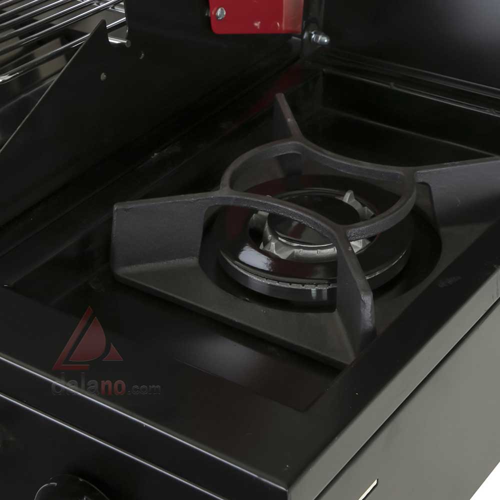 دارای پایه قرارگیری سیخ، توری کباب و ناودونی شعله پخش کن