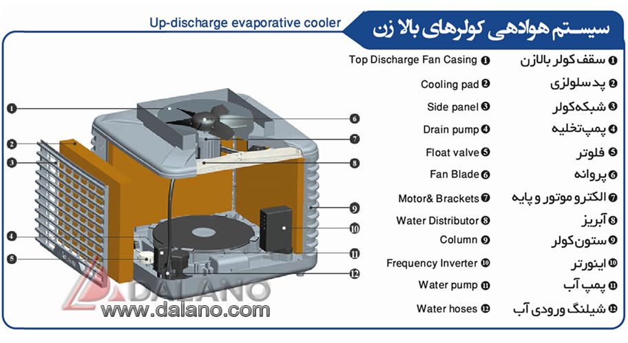12. دارای سیستم دور معکوس برای اگزاست هوای داخل به اینصورت که این کولر می تواند هوای داخل منزل، سالن و هر مکانی که نصب شده را به بیرون تخلیه نماید یعنی برعکس کار کند.